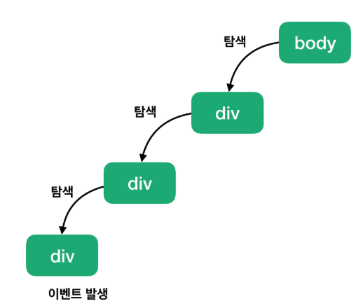 - 이벤트가 발생했을 때 최상위 요소인 body 태그에서 해당 태그를 찾아 내려간다.