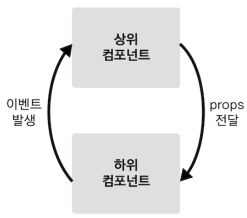- 자식 컴포넌트는 부모 컴포넌트에게 데이터를 전달할 수는 없지만 이벤트를 통해 메시지를 전달할 수 있음